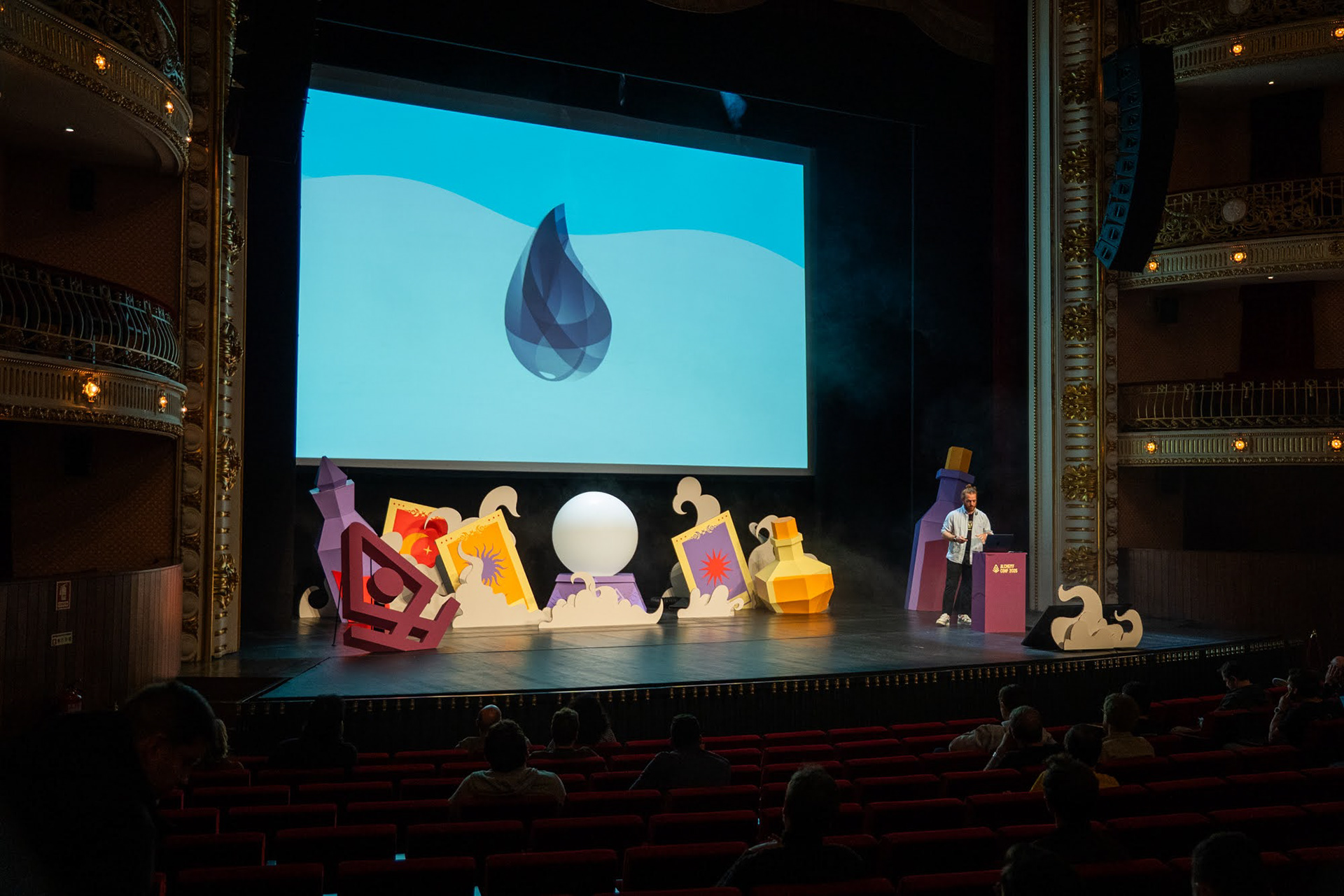 Inspired by the magical themes of alchemy and chemistry, we designed and built the stage set for the conference—a playful and immersive project that was an absolute joy to bring to life.