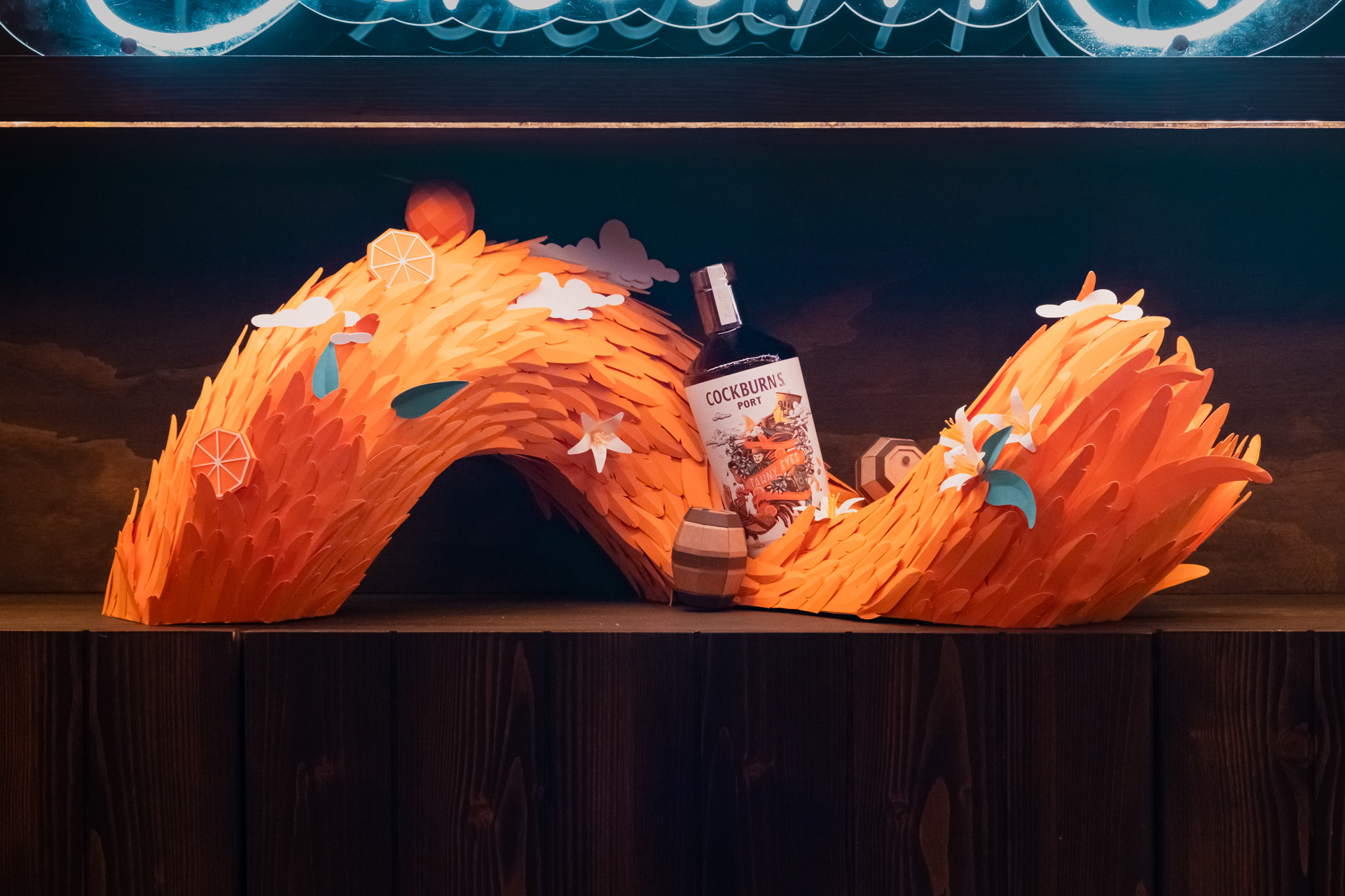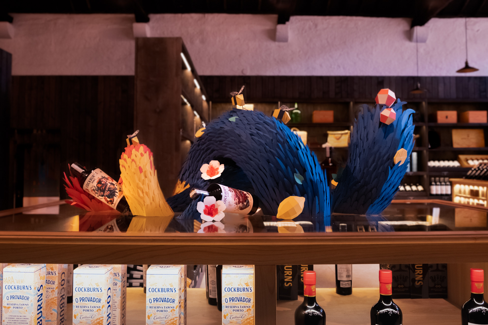 We developed a series of installations to hold each bottle, inspired by the beautiful illustrations of the wine's label.