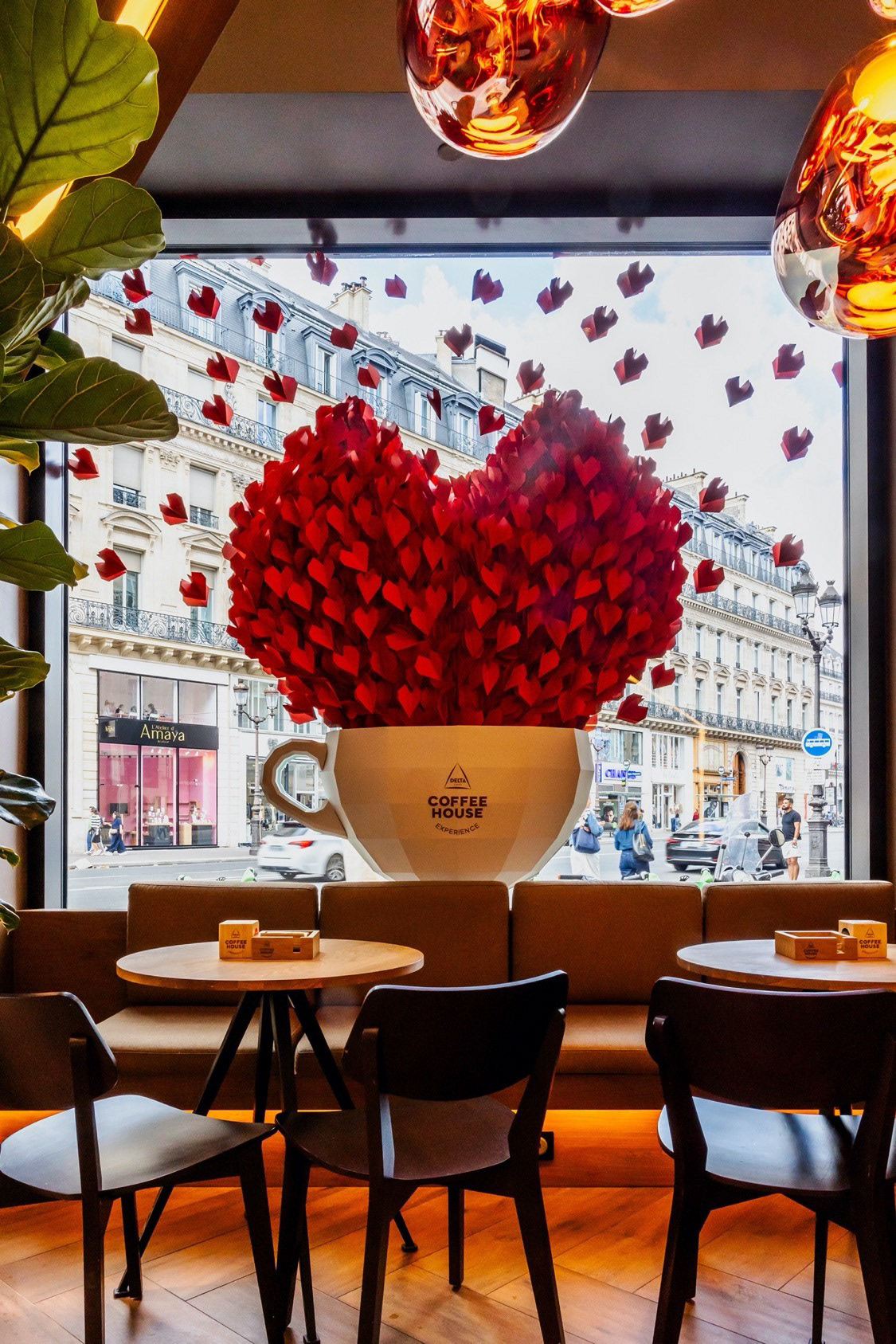 Drawing from the symbol at the core of the brand’s identity, the heart, the installation creates a symbolic connection with Paris, the city of love.