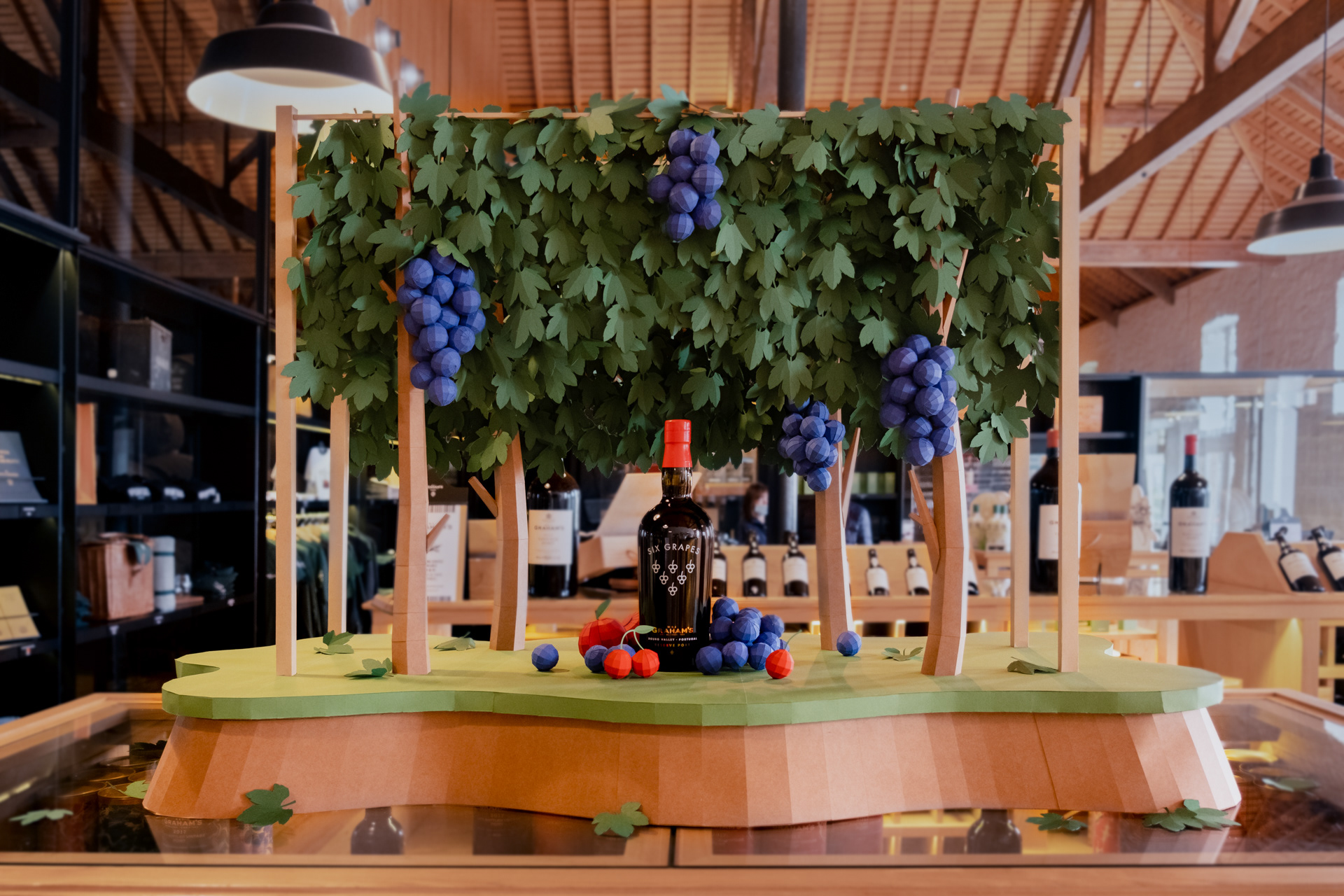 This custom made paper-crafted display was handmade for Graham's wine Six Grapes, recreating the scene of a vineyard and the flavors that aromatize this beautiful wine.