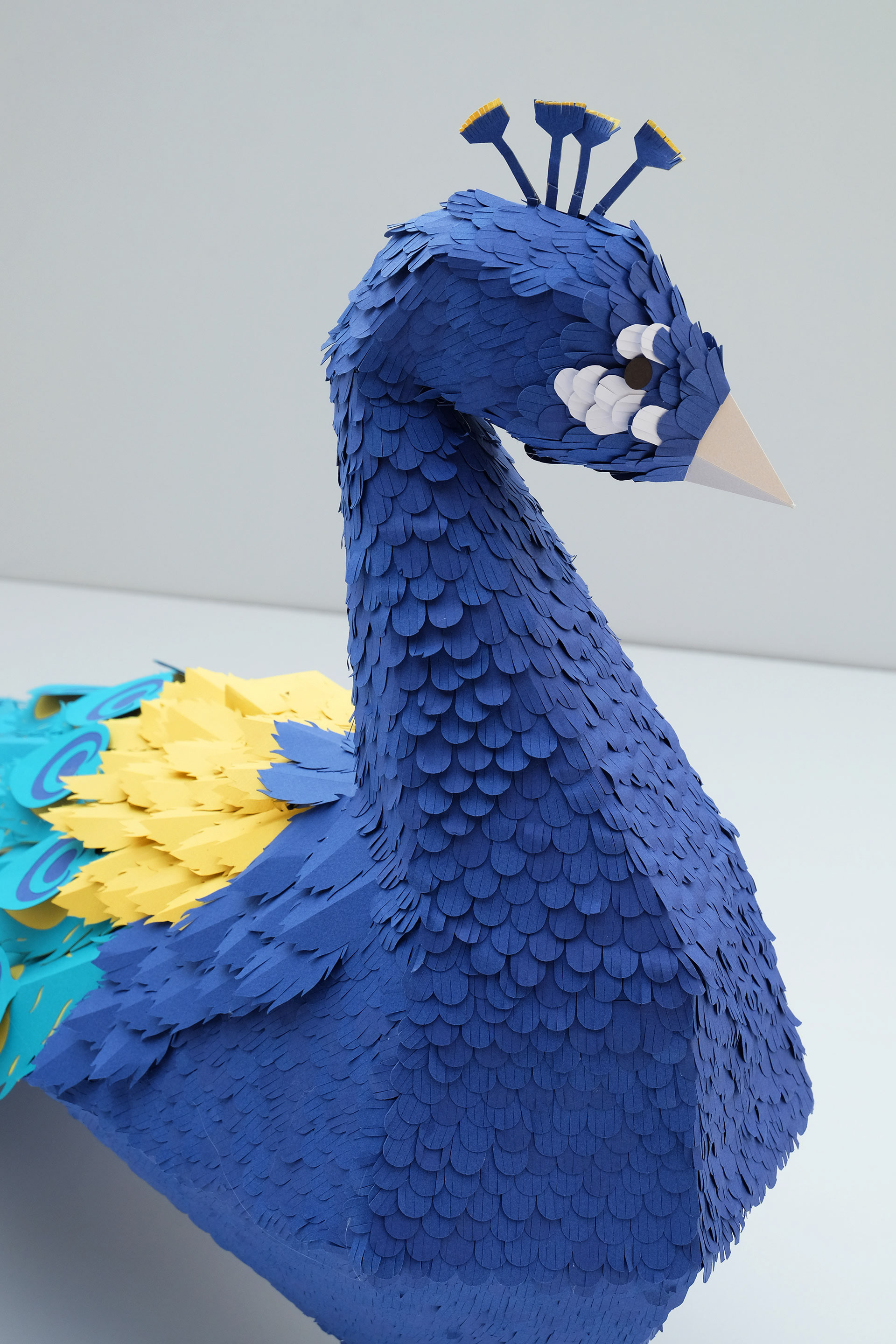 The watches were placed on top of the peacock and disguised between the thousands of feathers of this paper animal.