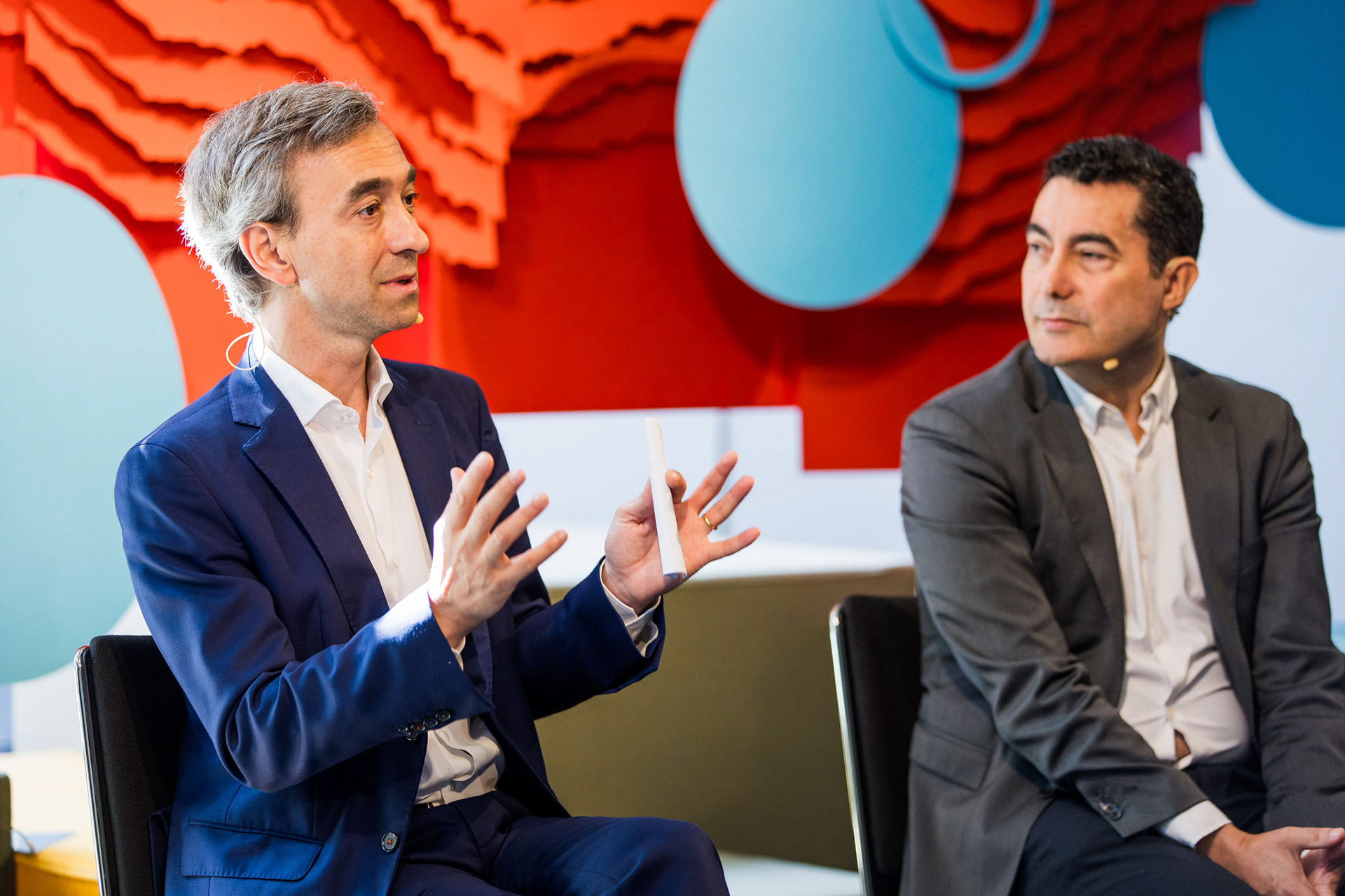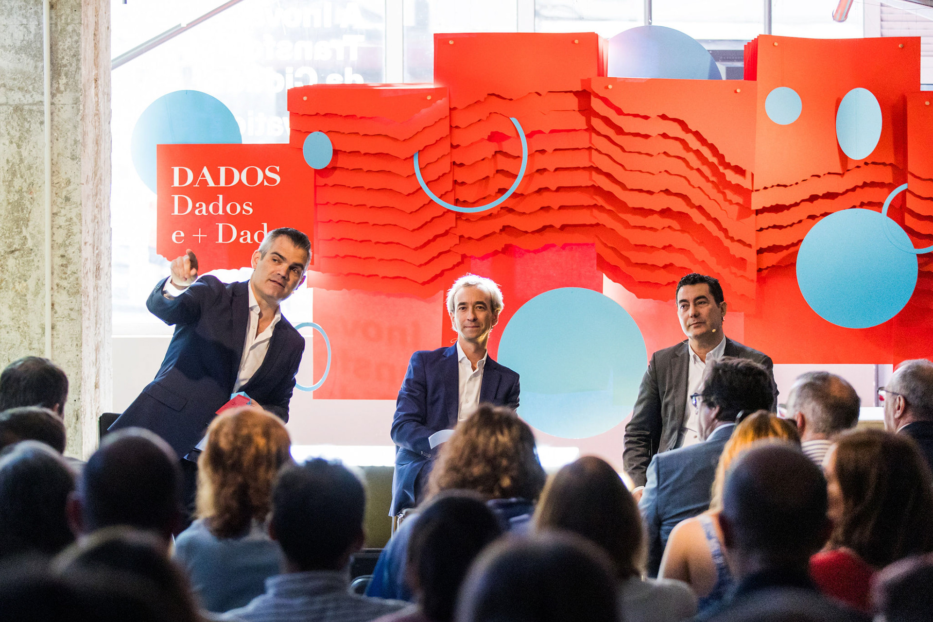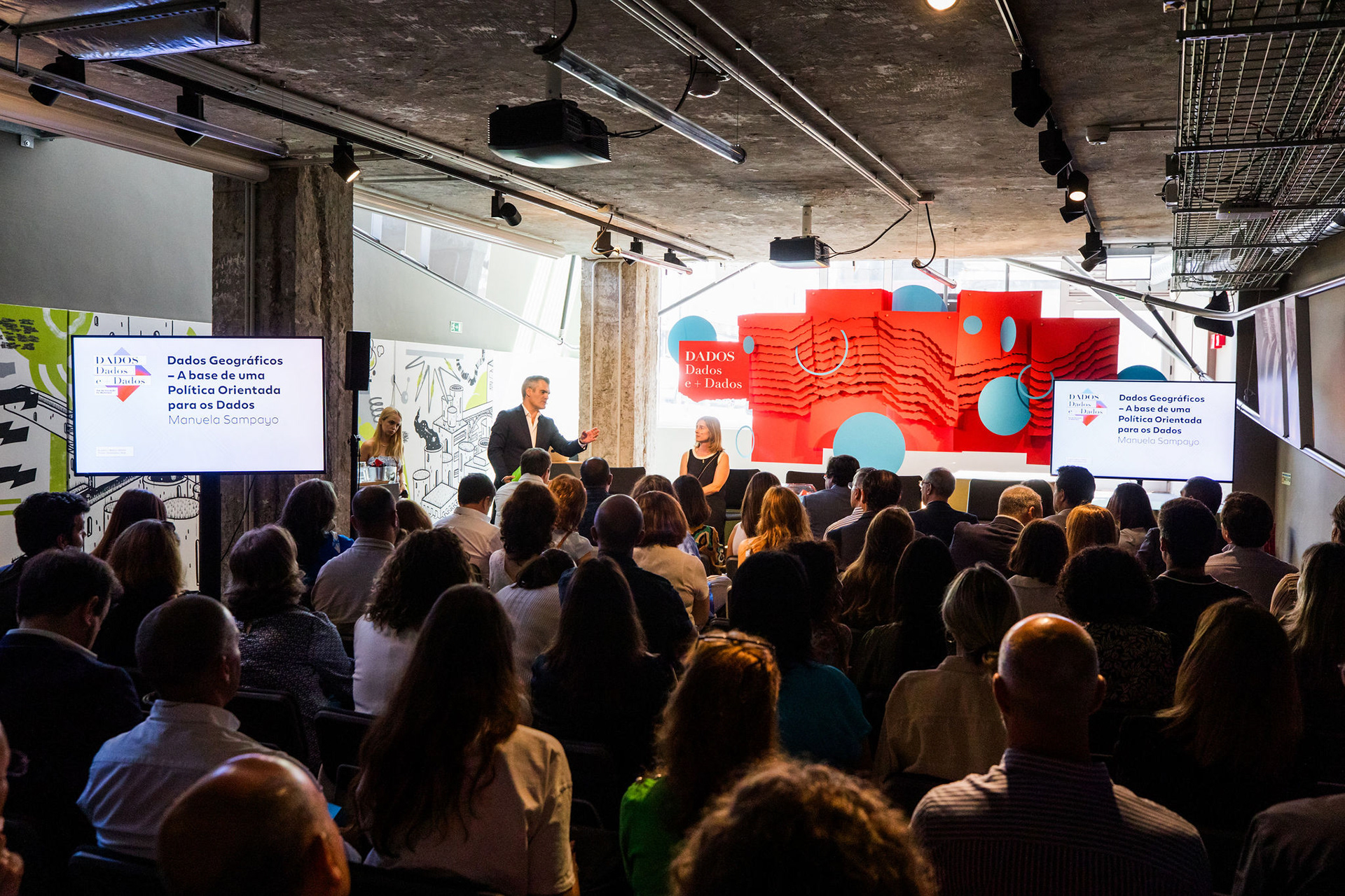The scenography translated these data layers into a physical, visual backdrop for the event.