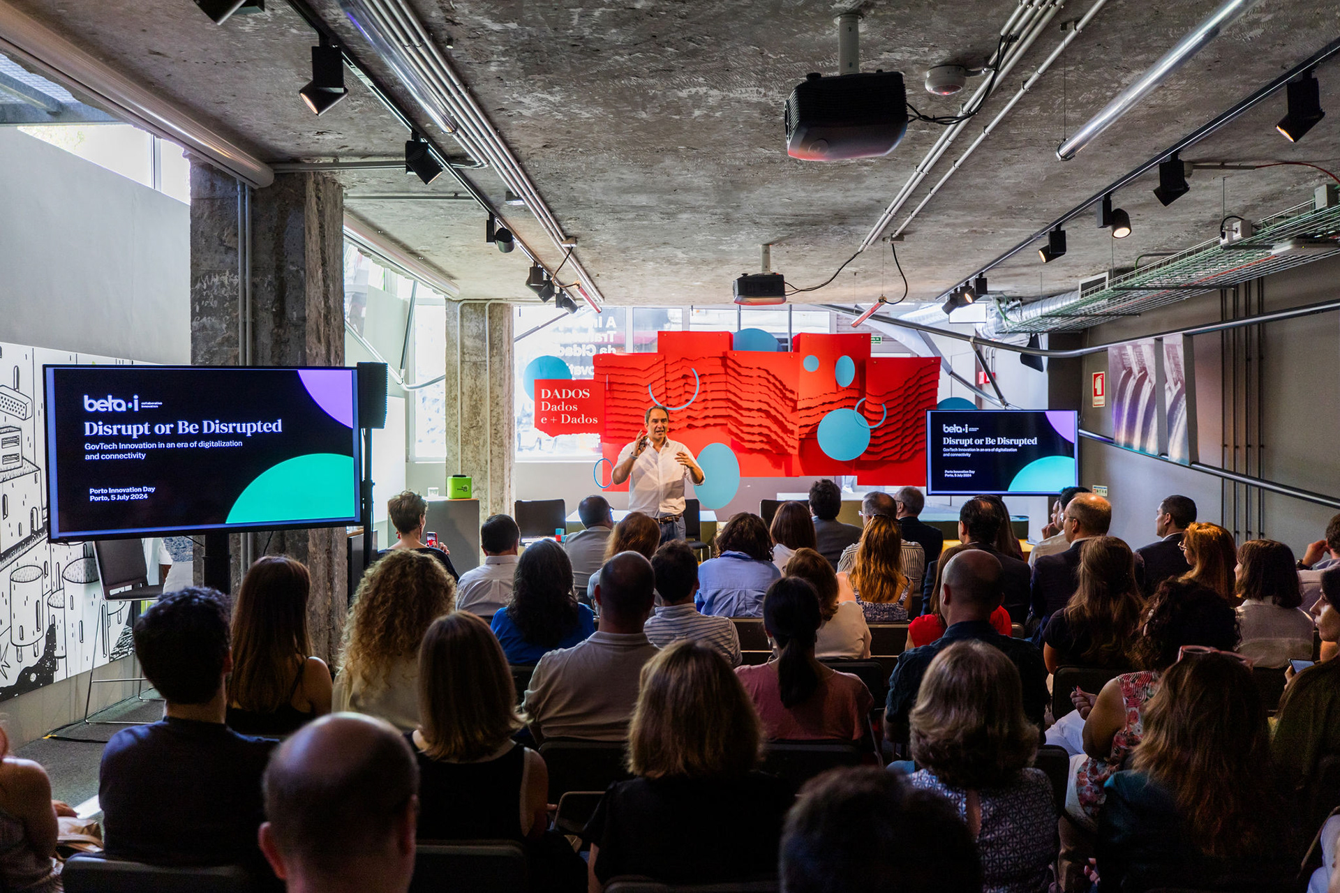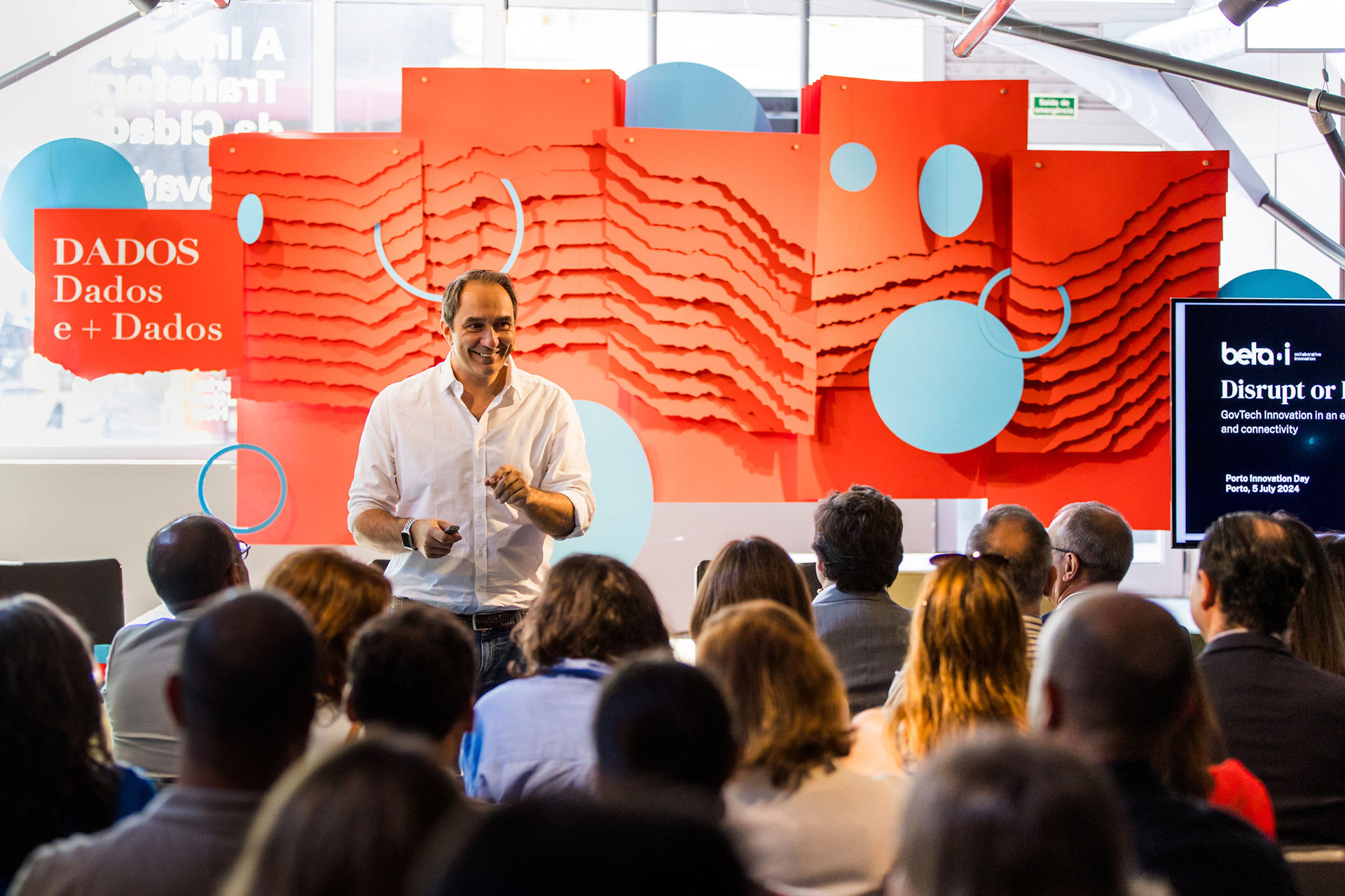 For the fifth edition of Porto’s Municipality Innovation Day, focused on smart data management and urban platforms, we designed the stage set inspired by the layered structure of the territory and the city’s digital infrastructure.