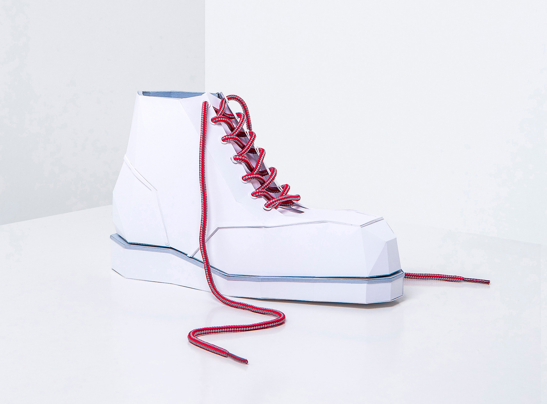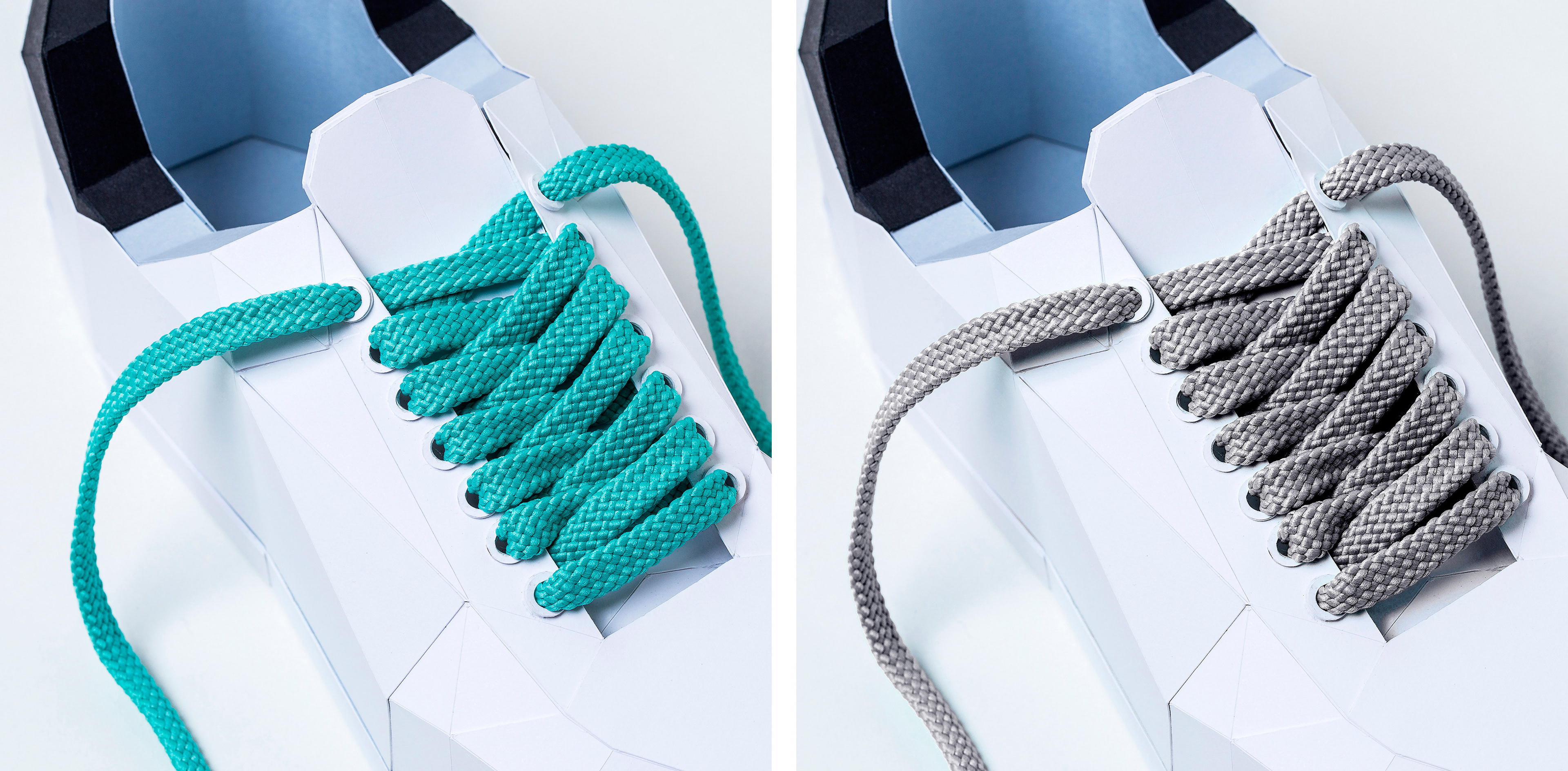 To highlight the laces without distracting from the campaign with real shoes, they asked us to create blank, all-white papercraft versions of a sneaker, a boot, and a shoe. This allowed the laces to take center stage—bold, colorful, and full of personality.