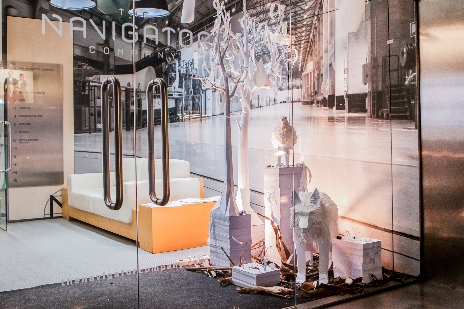 As part of their commitment to preserving biodiversity in their forests, The Navigator Company asked us to illustrate their office window with some of the species natural to this habitat, using only the paper they offer their clients.